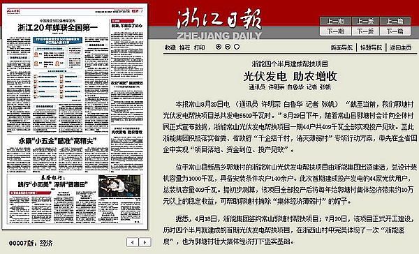 8月30日,浙江日報報道浙能集團率先在全省國企中實現(xiàn)“項目落地、資金到位、投產(chǎn)見效”。浙江日報 圖