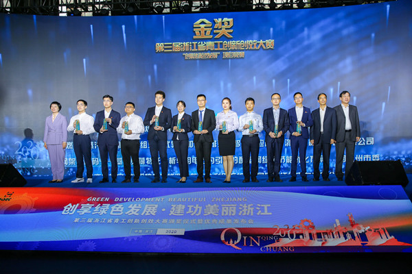 頒獎(jiǎng)典禮上,主辦、承辦單位領(lǐng)導(dǎo)分別為“綠色生態(tài)”“綠色制造”“綠色產(chǎn)品”“綠色服務(wù)”四個(gè)組別的獲獎(jiǎng)項(xiàng)目頒獎(jiǎng)。浙能集團(tuán)共13個(gè)項(xiàng)目獲獎(jiǎng),其中《燃?xì)?蒸汽聯(lián)合循環(huán)機(jī)組外置式霧化加濕減排裝置》項(xiàng)目獲得大賽金獎(jiǎng),《基于大數(shù)據(jù)的地質(zhì)災(zāi)害在線監(jiān)測(cè)預(yù)警平臺(tái)》作為優(yōu)秀項(xiàng)目在現(xiàn)場(chǎng)進(jìn)行發(fā)布展示,浙能青年以精彩的表現(xiàn)贏得了評(píng)委及觀眾的一致好評(píng),充分展示了集團(tuán)青年員工開拓創(chuàng)新、銳意進(jìn)取的精神風(fēng)貌。