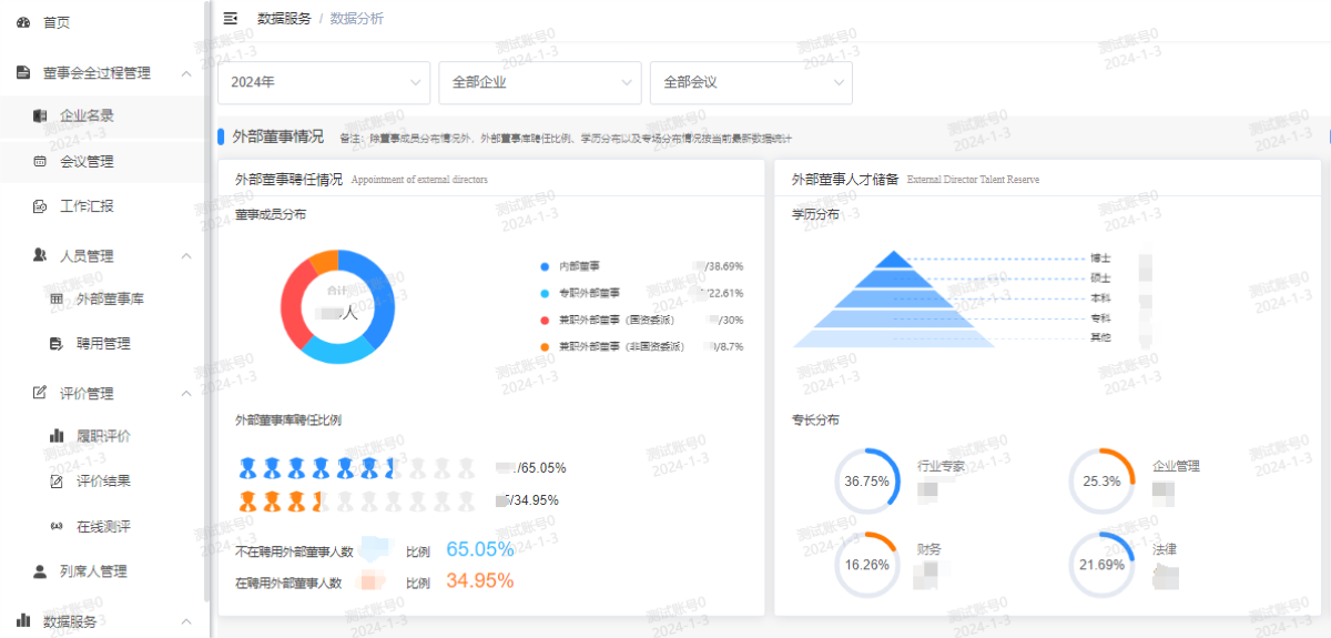 董事會運行管理系統(tǒng)按省國資委管理要求研發(fā)部署,依據(jù)國資監(jiān)管機構(gòu)要求與企業(yè)章程,結(jié)合企業(yè)發(fā)展戰(zhàn)略和業(yè)務(wù)特點,形成外部董事多維度畫像,深化預(yù)警提醒,前移監(jiān)督關(guān)口,可視化呈現(xiàn)各企業(yè)董事會建設(shè)、外部董事人才儲備等情況,實現(xiàn)預(yù)警在先、監(jiān)督有形,助力董事會規(guī)范性建設(shè)更高效、更智能。截至2023年底,董事會運行管理系統(tǒng)已覆蓋省國資委及16家省屬企業(yè),累計錄入千余條會議數(shù)據(jù)與相關(guān)董事會議題數(shù)據(jù),以及百余條外部董事履職數(shù)據(jù),兼職外部董事庫中擁有百余位人才儲備。系統(tǒng)從使用便捷性、數(shù)據(jù)準(zhǔn)確性和數(shù)據(jù)實用性三方面著手,打造“好用、實用、管用”的董事會運行管理數(shù)字化應(yīng)用。