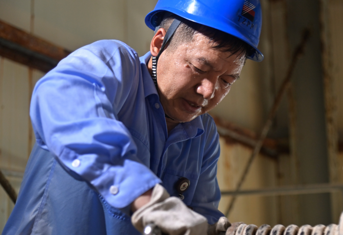 頂著滾滾熱浪,不顧泵殼的滾燙,用雙手細(xì)心感觸著泄漏點(diǎn)的堵漏情況。7月15日上午,臺(tái)州發(fā)電廠8A吸收塔循環(huán)泵泵殼泄漏,該廠維護(hù)部環(huán)保班班長(zhǎng)任呂華和他的戰(zhàn)友顧不上濕透的工服。露天的炙烤,繁重的工序,直到摸準(zhǔn)“病脈”,他緊鎖的眉頭才終于舒展。