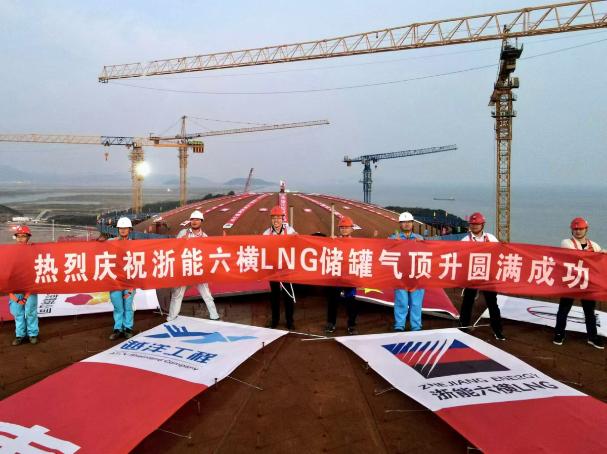 浙能六橫LNG項(xiàng)目2、3號儲罐順利完成氣頂升。 劉莎 攝