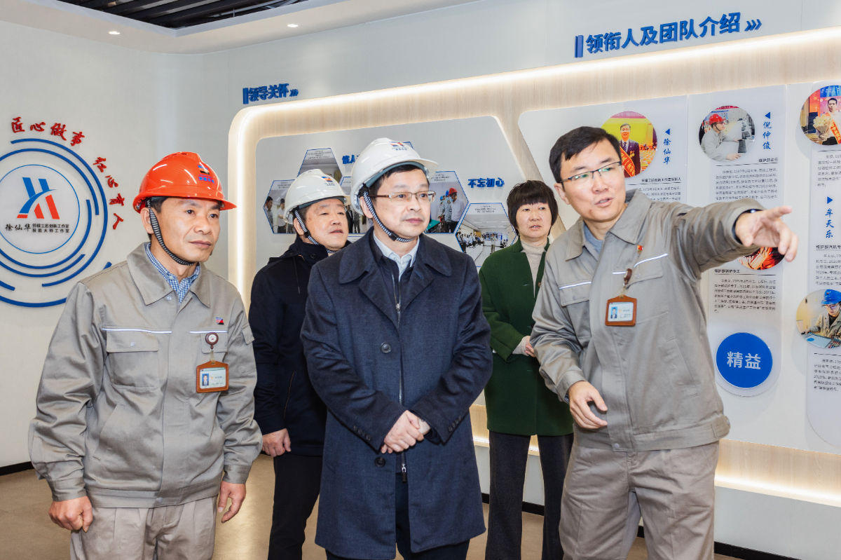 倪震一行到樂電徐仙華勞模(工匠)創(chuàng)新工作室參觀指導(dǎo)。 張立忠 攝