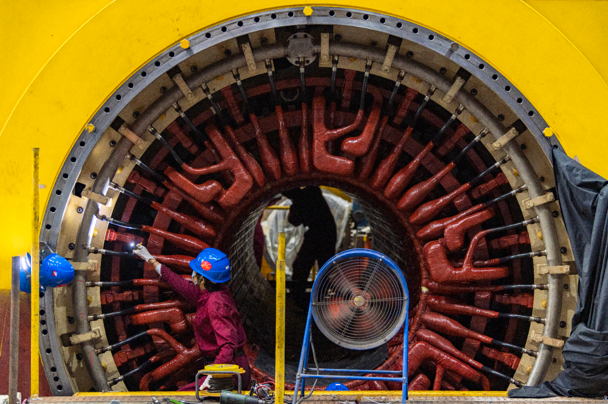 蘭電公司全力推進(jìn)3號(hào)機(jī)組C修備戰(zhàn)迎峰度冬,圖為檢修人員在對(duì)3發(fā)電機(jī)定子鼻端絕緣與絕緣引水管磨損檢查與修復(fù)。 胡肖飛 攝