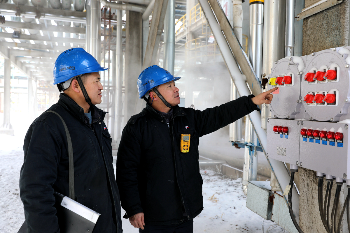 新天煤化工現(xiàn)場(chǎng)巡檢人員認(rèn)真檢查、仔細(xì)記錄,確保冬季設(shè)備運(yùn)行正常。 張建國(guó) 攝