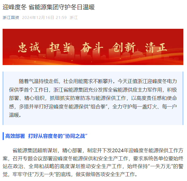 守護(hù)冬日溫暖,浙能集團(tuán)迎峰度冬在行動(dòng)