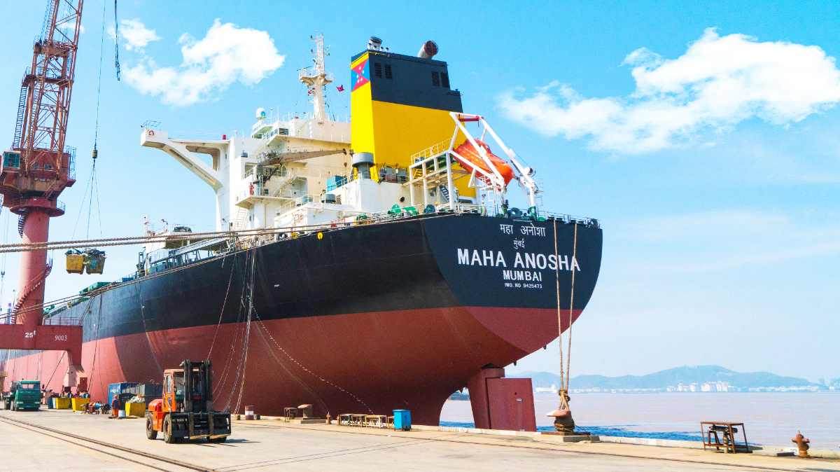 浙能首條外籍船舶印度貨輪“瑪哈阿諾莎”脫硫裝置投運(yùn)。 邵子謙 提供