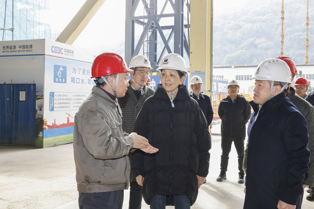 浙江省能源局副局長(zhǎng)錢(qián)哲到嘉興電廠(chǎng)四期擴(kuò)建項(xiàng)目9號(hào)機(jī)組建設(shè)現(xiàn)場(chǎng)調(diào)研。 王侃 攝