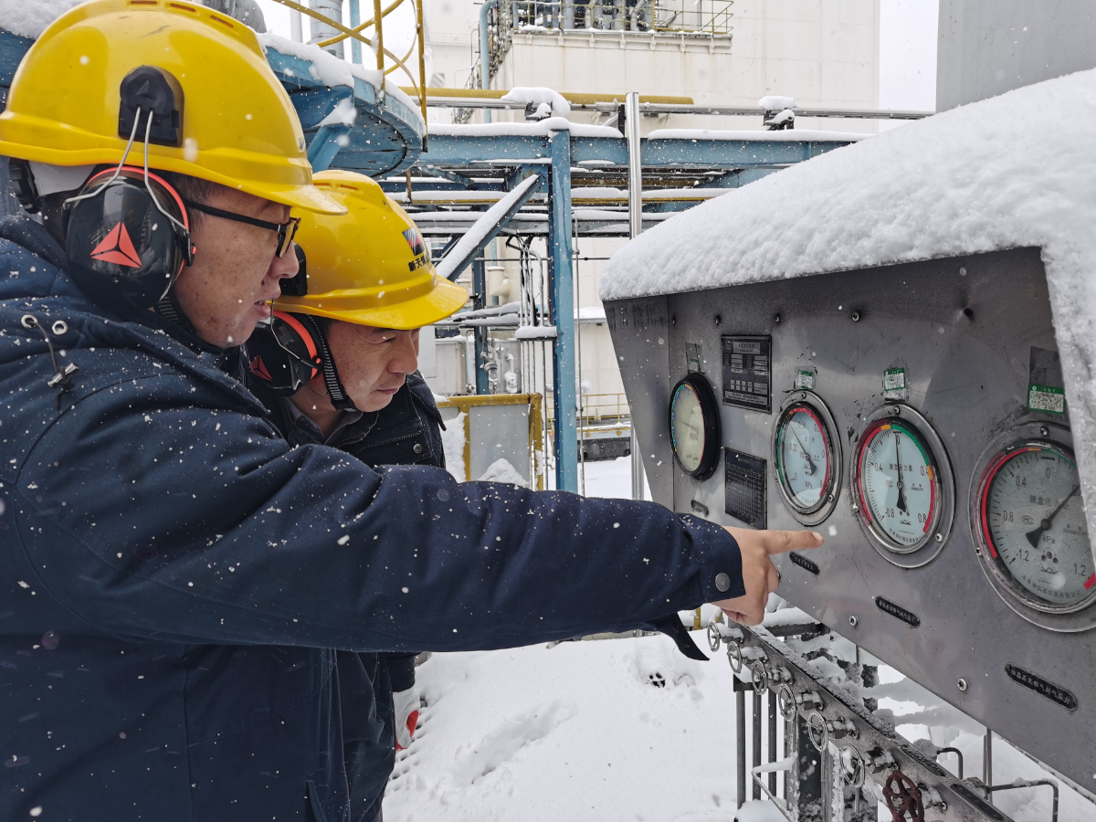 迎峰度冬期間,浙能新天煤化工現(xiàn)場操作人員正在認(rèn)真巡檢。 祁媛 攝
