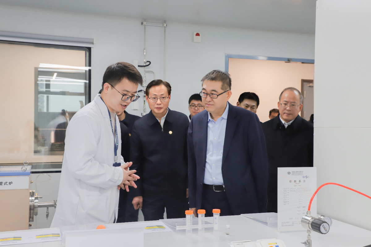 張雁云一行還參觀了白馬湖實(shí)驗(yàn)室展廳與固態(tài)電池實(shí)驗(yàn)室、鈣鈦礦太陽能電池實(shí)驗(yàn)室。