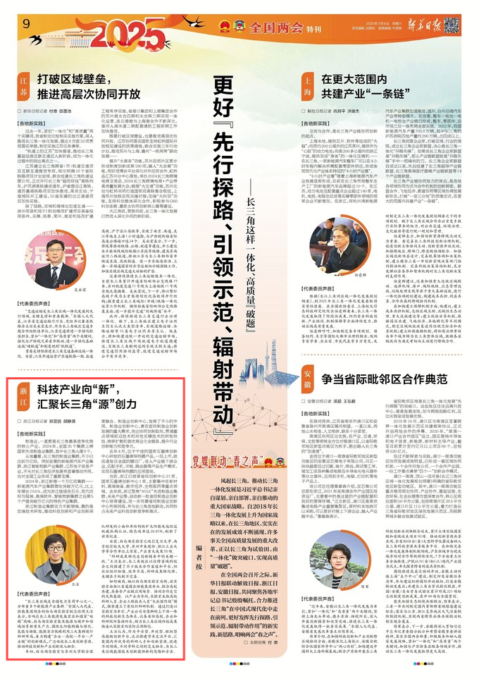 江蘇省委機(jī)關(guān)報(bào)《新華日?qǐng)?bào)》全國兩會(huì)特刊長三角一體化相關(guān)主題稿聚焦全國人大代表、浙能集團(tuán)王潔同志。 新華日?qǐng)?bào) 圖