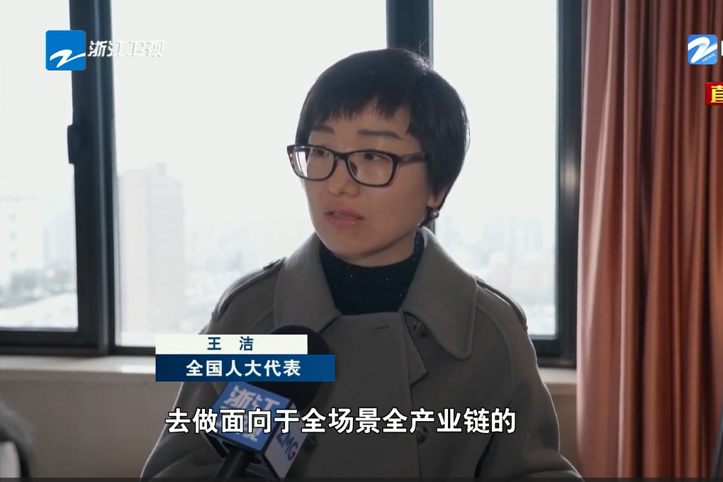 浙江衛(wèi)視《浙江新聞聯(lián)播》報(bào)道《直通全國兩會(huì) 出席十四屆全國人大三次會(huì)議的浙江代表團(tuán)抵京》,采訪王潔同志。 浙江衛(wèi)視《浙江新聞聯(lián)播》 圖