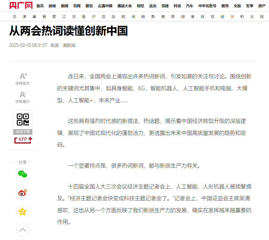 央廣網(wǎng)轉(zhuǎn)載《從兩會(huì)熱詞讀懂創(chuàng)新中國》,聚焦王潔同志。 央廣網(wǎng) 圖