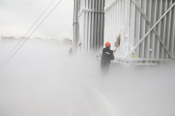 浙能城燃義烏公司保供站場站運行工正在對設(shè)備進行除雪。 任惠玲 攝