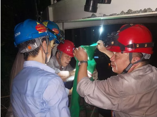 面對災(zāi)情,浙能救援隊發(fā)揮電力人的專業(yè)優(yōu)勢,裝潛水泵、水管,連接、敷設(shè)電纜線路,一氣呵成。17時30分,第一臺排水泵出水,19時30分,6臺排水泵投入排水作業(yè),水位迅速下降。在悶熱的環(huán)境中,救援人員們個個汗流浹背,汗?jié)竦囊路o貼著后背,全身上下像在水里泡過一般,但沒有一個人叫苦叫累,也沒有一個人懈怠退縮。