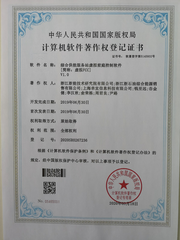浙石油銷售公司科技項目獲得國家軟件著作權(quán)