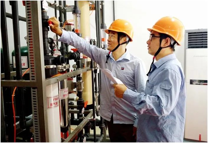 ▲浙能技術(shù)研究院環(huán)化專業(yè)人員在長興中試基地膜實驗室調(diào)試設備